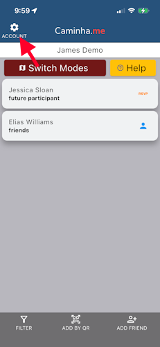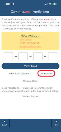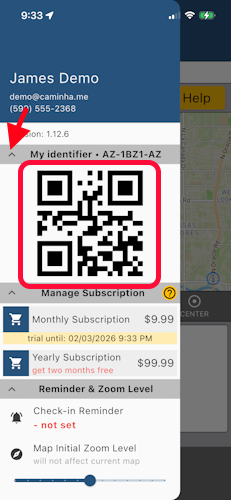 Every Caminha.me account has an identifier which is also displayed as a QR code.