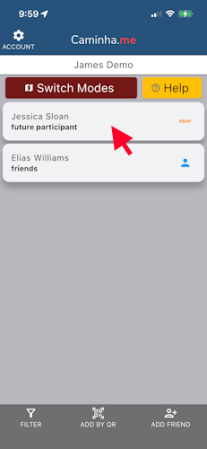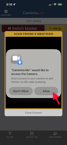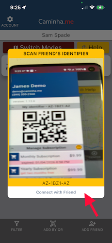 Then scan your friend's QR code with your phone. This will add them to your list of connections.
