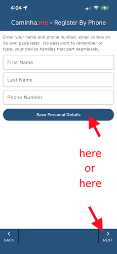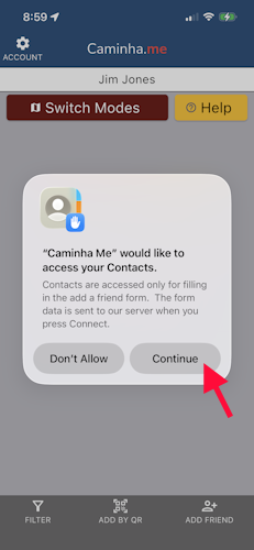 Convenient - If you gave permission for Caminha.me to access your contacts, you will have a list of contacts displayed under the boxes.