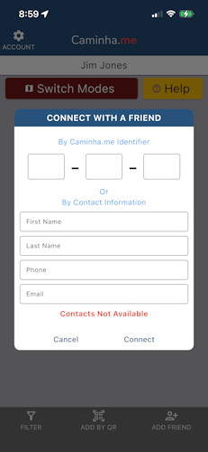 Manual - Directly enter your friend's contact information into the appropriate boxes or have your friend send you their identifier and enter it into its appropriate boxes.